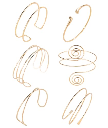 - 【Variety & Polished Elegance】This set includes 6 stylish arm cuffs jewelry for women, featuring swirl, wave, and minimalist designs. Each cuff is carefully polished for a smooth, refined finish. Wear individually for a subtle, refined look or stack with other arm bangles to create a layered, elegant style that suits different outfits and occasions.